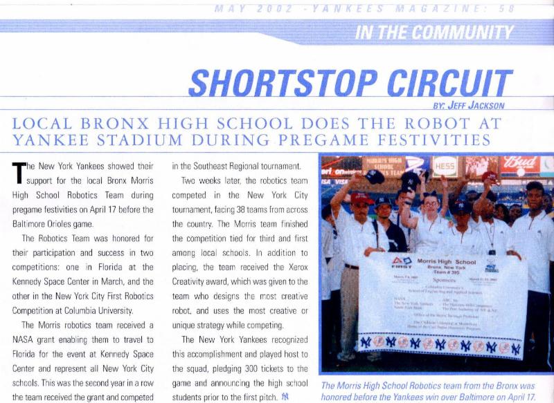 New York Yankees Honor the Morris High School FIRST Robotics team